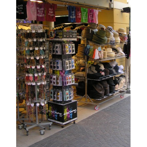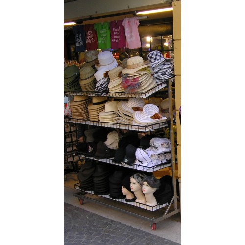 Tags: cappelli, berretti, carrello, espositore, polipropilene, inox, espositore da terra, su misura