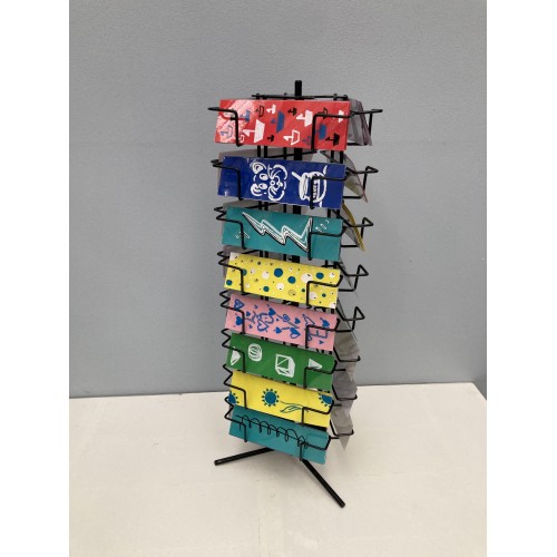 Espositore per magneti da tavolo girevole. Costituito da un supporto in filo metallico con rivestim..