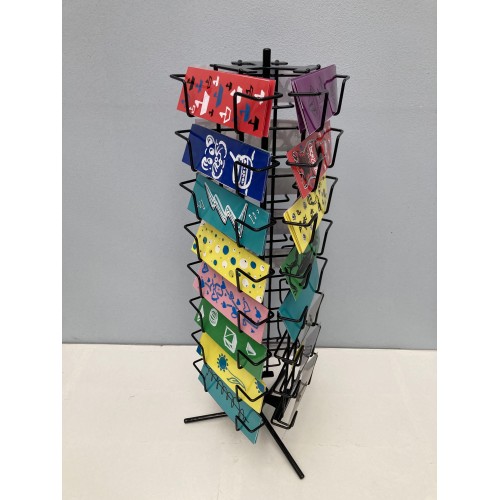 Espositore da terra mobile con ruote per esposizione di biglietti di auguri. Struttura in filo metal..