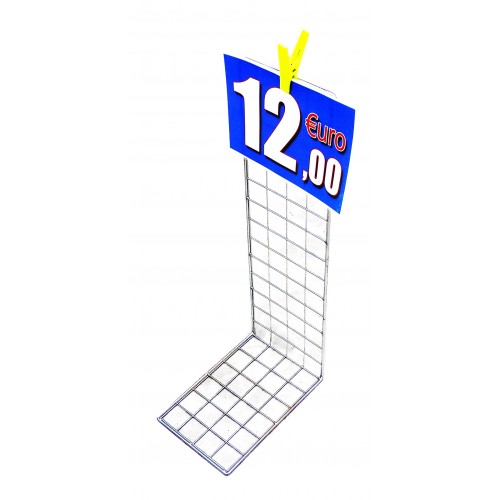 Portaprezzo realizzato in filo d’acciaio con finitura cromata, da usare direttamente sopra il banco.