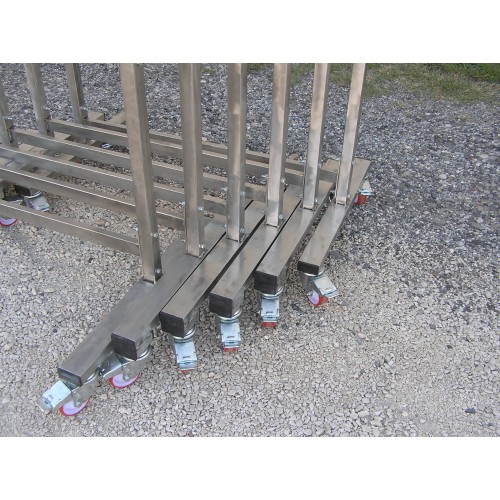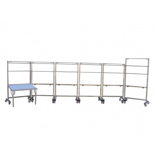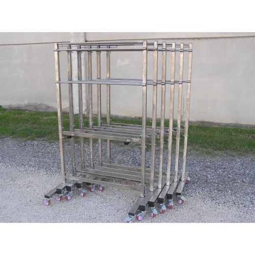 Caratteristiche: Struttura in tubolare acciaio, i tubolari verticali sono telescopici H 173/200 cm Ruote diametro 80 mm con freni.