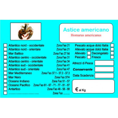 Cartelli plastificati segnaprezzo standard o personalizzati per l'etichettatura del pesce, della frutta e verdura, per i formaggi e per la carni.