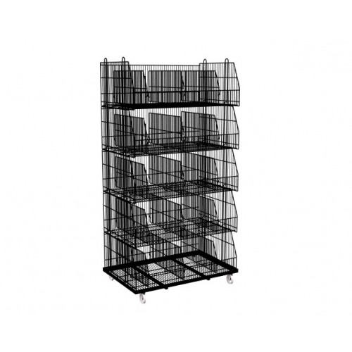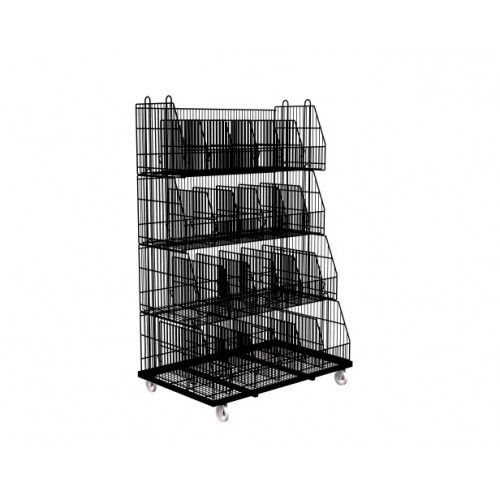 Dotata anche di telaio inferiore con ruote per un eventuale spostamento delle ceste impilate.