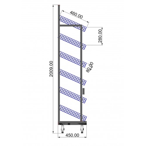 Il prodotto viene completato con il montaggio di ruote girevoli d.80 mm con freno oppure con ruote diametri superiori