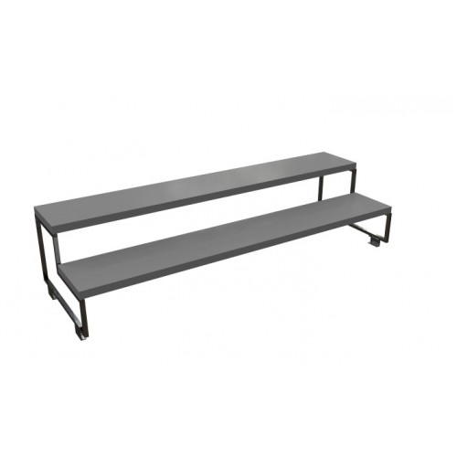 Sistema semplice ed economico realizzato in tubolare con piani in resina per creare un esposizione a gradini sul banco da mercato, di facile montaggio e smontaggio con viti ad alette.