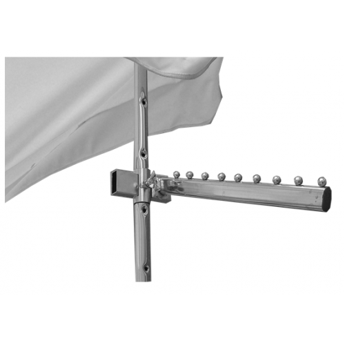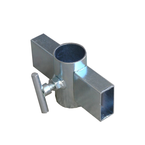 Attacco realizzato in acciaio zincato inserito nel palo telescopico viene utilizzato per l’applicazione della barra multiposto o altri accessori per l’esposizione.