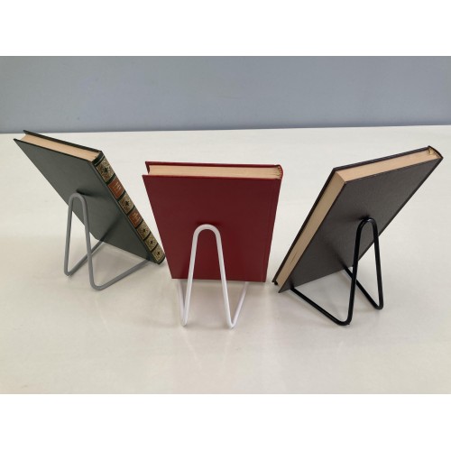 Comodo espositore reggilibro da banco realizzato in filo d'acciaio rivestito con materiale antigraffio, stabile e resistente. L'inclinazione rende ottimale la visione del libro. Ideale e pensato per librerie, biblioteche, punti vendita, showroom e ambienti professionali.